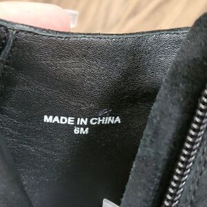 Black suede booties with ankle zipper