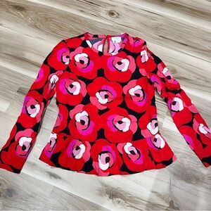 Kate Spade Deco Rose Peplum Top in Orient Red Women’s 2