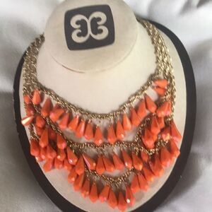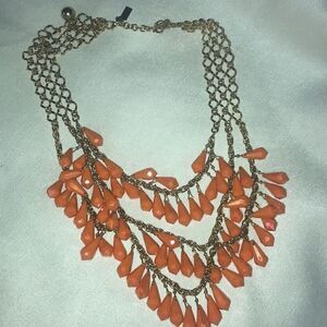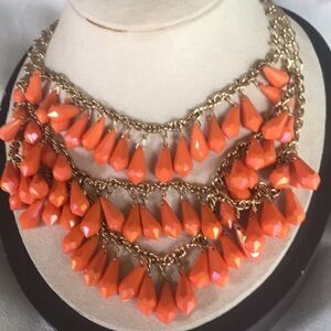 This Orange Necklace from Kate Spade has a adjustable length. Three tiers of sparkly iridescent orange beads on a gold chain.