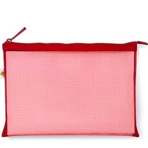 Mesh pencil bag measures 6 inches x 9 inches, features a gold spade logo tag, and has a zipper closure to keep items secure while traveling