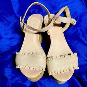 These are darling! Pale pink- straps- open concept and buckles at the ankle. Show of a pedicure while pairing these with a cute set of shorts or jeans. Classy and casual.