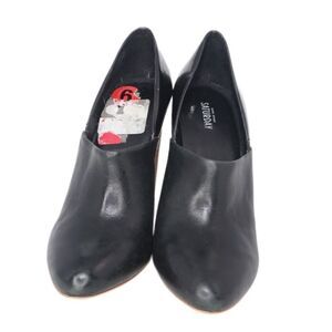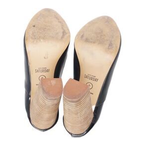 KateĀ SpadeāSaturday Black Leather Almond-Toe Heels, Sizeā6