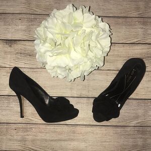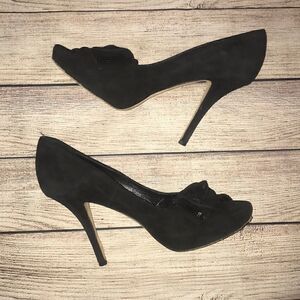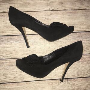Kate Spade Suede Black Ruffle Peep Toe Heels