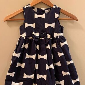 Adorable navy and white bow dress with pink underskirt. Features bow at the waist in the front and zipper back. No stains or rips. So cute!