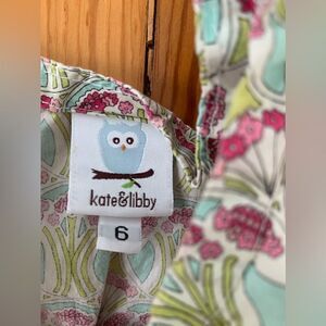 Lightly worn. Lightweight dress. Floral print with greens and pinks. Tie at the neck. Elastic waist. Size 6
