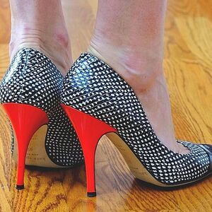 A pair of high heels is the foolproof way to add instant polish to jeans. Heels work best with jeans that are skinny, slightly relaxed or in between, such as boot-cut styles. Whether your preference is a classic tan, an unexpected neutral or a pair that’s black with a twist, try pointy-toed pumps. They lead the way as the chicest choice and have a steadfast, elongating effect.