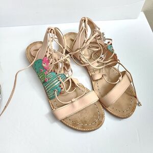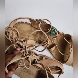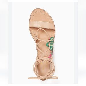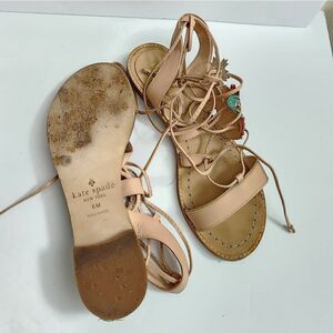worn 3x. has water stain that can be cleaned. sandals is in great condition