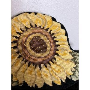 Katha Diddel Needlepoint Pillow Sunflower/Ladybug Wool/Velvet Back