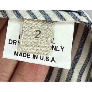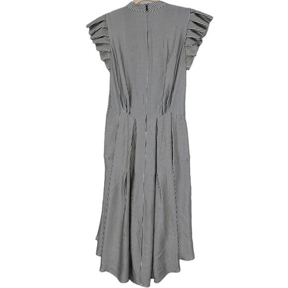 Katharine Kidd 100% Silk Navy Blue Striped Midi Dress with Ruffle Sleeves Size 2
