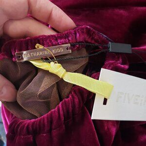 This luxurious two-tone velvet dress features a rich combination of deep burgundy and Cranberry Velvets, creating a striking contrast. Halter neck style, leg slits on both sides, waist tie. New with tags! Retail $485
