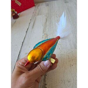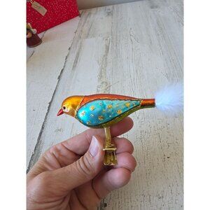 Kathe wohlfahrt glass sparkle bird clip ornament gold blue Xmas feather tree