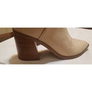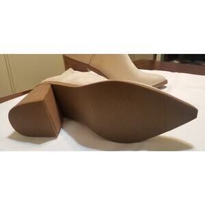 New In Box - Kathemoi - Women's Ankle Boots, Slip-on, Pointed Toe, Chunky Stacked Mid Heel, Cut Out, Size 8. Zipper Up the Back,; Size 8; Color - Tan;