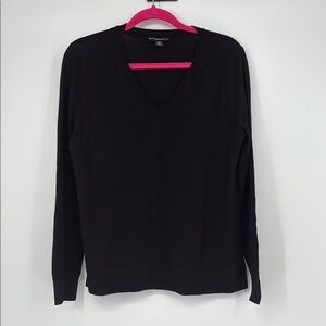Katherine Barclay Black V-Neck Sweater Size Large Classic Lightweight Knit