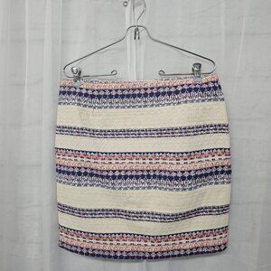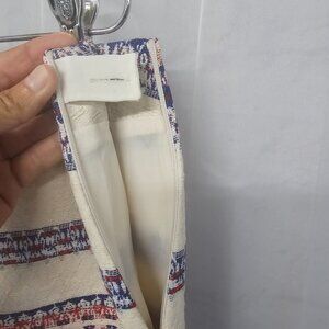 Katherine Barclay Cream Blue Tweed Tapestry Mini Skirt Striped Boho Retro 8