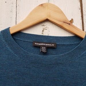Katherine Barclay Mens Blue Merino Wool Pullover Crewneck Sweater Size M Merino Wool Machine Wash