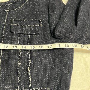 Katherine Barclay Navy Tweed Fringe Jacket Women's 12 Linen Blend Workwear