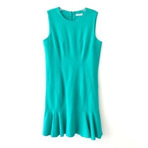 Katherine Barclay Tailored Curves Sheath Dress With Ruffle Hem In Teal Green