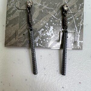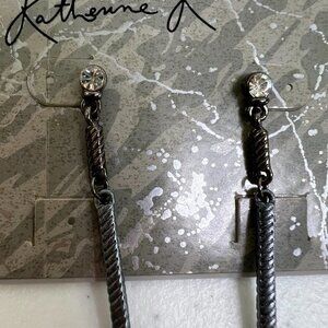 Katherine K Earrings Drop Gray Rhinestone Textured Dangle Long New