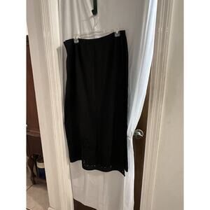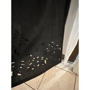 Katherine Kelly Black Irish Linen True Wrap Midi Skirt Floral Cutout Bottom 16