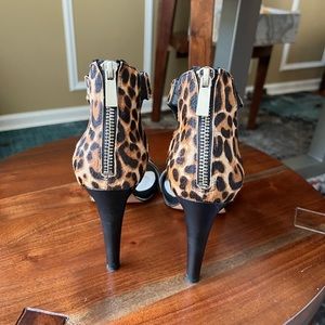 Katherine Kelly Blake T-Strap Natural Leopard Calf Hair Stiletto Heels
