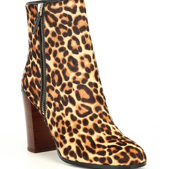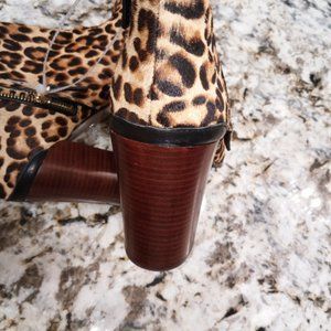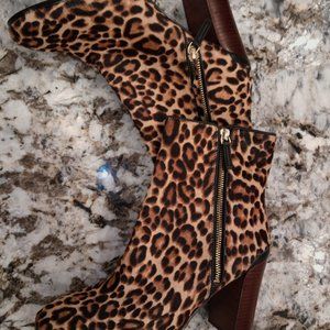 Katherine Kelly Jaymie Brown Leopard Calf Hair Leather BOOTIES Ankle BOOTS