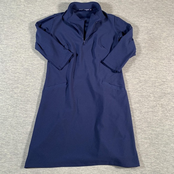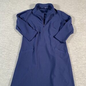 Katherine Way Dress Womens XS Navy Blue Stretch Pullover Pockets Quarter Zip USA