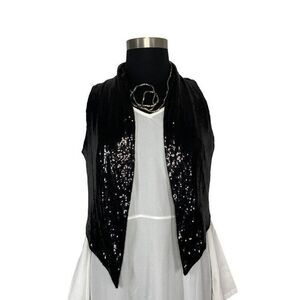 Elegant black sequin cropped asymmetric open front waistcoat vest. Lined.