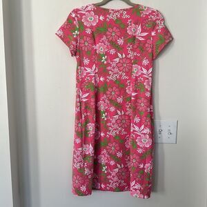 Vibrant shortsleeved stretchy dress in EUC. . Has pockets.
