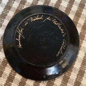 The Katherine's Collection Hand Painted Duckling Plates are a colorful and fun set of 3 round ceramic collector plates, featuring a duck theme. These hand-painted plates are 6 inches in diameter, perfect for all occasions, and stackable for easy storage. Each plate is uniquely created using art pottery production style and technique, showcasing the American culture and duck character. These vintage plates are a charming addition to any decorative collection, adding a touch of whimsy and character to your home decor. In very, preowned condition.