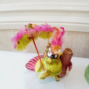 Green cockatoo parrot toothpick holder bird with umbrella