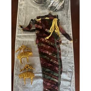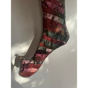 Katherine's Collection ? Wayne Kleski Multicolor Christmas Stocking 24” whimsical woven velvet ribbon and jingle bells