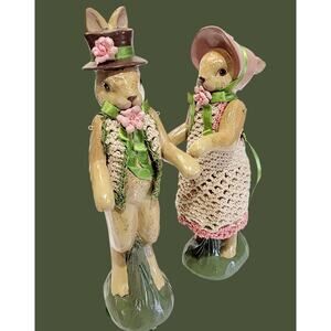 Katherines Collection Wayne Kleski Pair Mr and Mrs Bunny Rabbit Figurines Rare