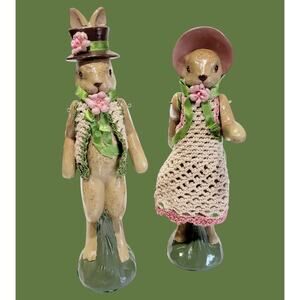 Crafted in the Philippines in the late 20th century by artist Wayne Kleski, these original figurines are signed and weigh 2 lbs. They are a perfect collectible for adults who love bunnies and rabbits and want to add a romantic touch to their home. Get your hands on this unique pair of figurines and add a touch of elegance to your Easter celebration.