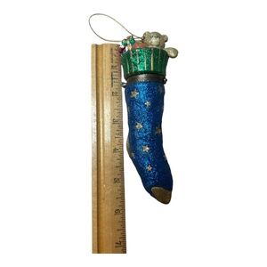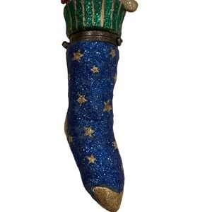 NWOB - Listing consists of a beautifully designed trinket box stocking ornament from Katherine's Collection. It is a must-have for the holiday season. With a festive theme the stocking will make a perfect addition to your Christmas decor. The trinket box ornament is part of Katherine's Collection and crafted with the finest materials to ensure durability. Perfect for storing a (very) small item. Gold string hang tag, working hinged top, and blue glittered finish.