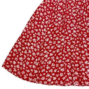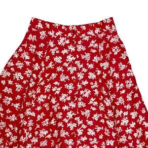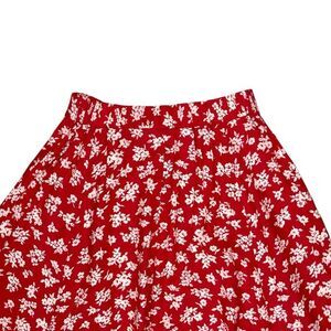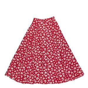 - Description: Kathie Lee Button Front Maxi Skirt 6 Red Floral Print Summer Comfy Boho Coastal
