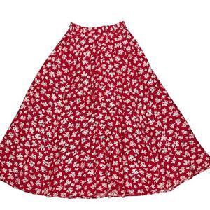 Kathie Lee Button Front Maxi Skirt 6 Red Floral Print Summer Comfy Boho Coastal