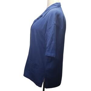 Kathie Lee Collection Women’s XL blue linen blend cardigan with a breezy, boxy fit. Short sleeves, collared neckline, and button‑front closure create an easy, coastal‑grandma chic look. Lightweight and relaxed—perfect for layering over dresses or pairing with high‑waist denim.