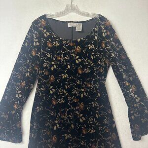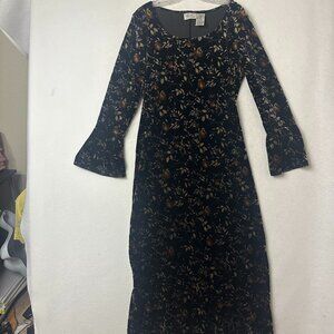 Kathie Lee Dress sz XL 16/18 velvet maxi dark floral flare sleeves whimsigoth