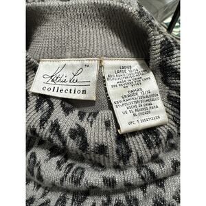 Add some wildness to your wardrobe with this Kathie Lee Gray Black Leopard Metallic Sleeveless Sweater Tank Top in size Large. The animal print pattern is perfect for travel, casual or business occasions. The pullover closure makes it easy to wear and the knit fabric type is perfect for hand wash only care.