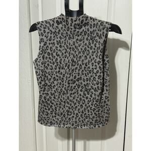Kathie Lee Gray Black Leopard Metallic Sleeveless Sweater Tank Top Size Large