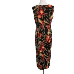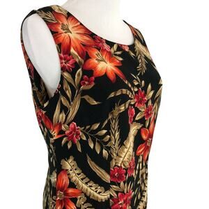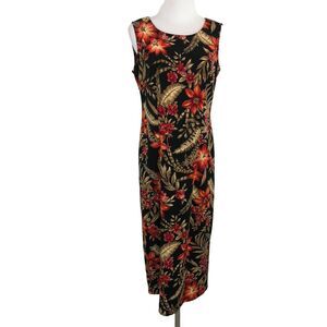 Kathie Lee Soft Shift Midi Dress Boat Neck Sleeveless Size Small Tropical Motif