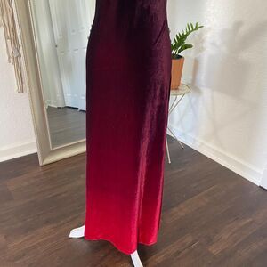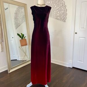 ༓ dark burgundy red velvet full length maxi dress with stunning color gradient ombre effect