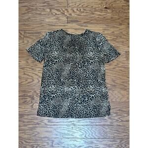 Kathie Lee Women's Cheetah Leopard Print Stretch Short Sleeve Blouse Top, Sz M