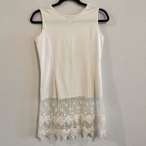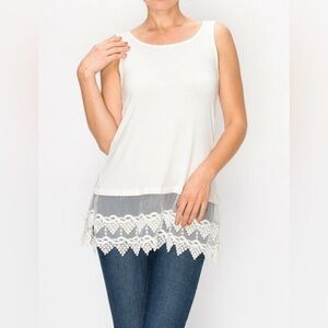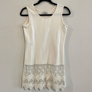 Kathleen Kirkwood Cream Stretch Cotton Lace Bottom Longline Layering Tank Top