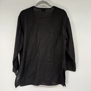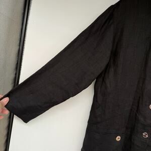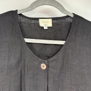 Kathleen Sommers Shirt Womens S Black Linen Button Front Pocket USA Minimalist