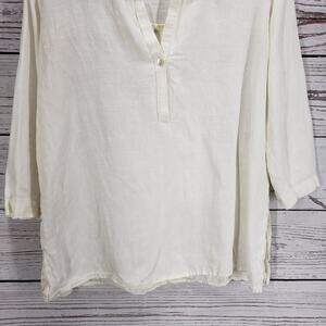 Kathleen Sommers Women's Ivory 100%Linen 3/4 Sleeve Top Size 4