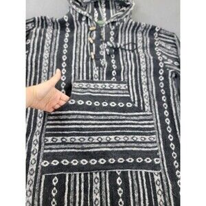 Kathmandu Imports Hoodie Mens XL Black Gray Striped Baja Woven Pullover Toggle
