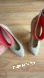 Stunning beige + peachy (not red)cuff suede platform heels by Kathryn Amberleigh. Perfect for elevating any outfit. I adore these and don’t want to part… just need to be 7.5 I’m an 8 ! They are so creamy with the peachy cuff dress up a plain outfit 😊❤️❤️