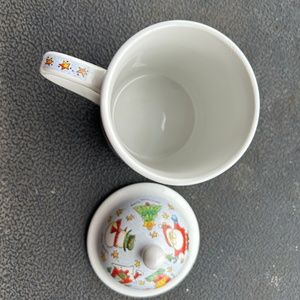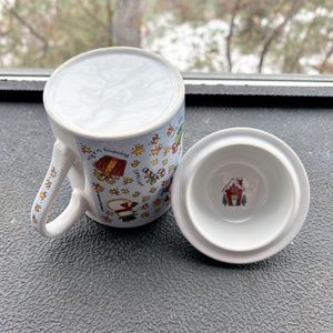 This Sweet Holiday mug with raised lid designed by Kathryn Distefano features delightful saying’s and colorful drawings indicative of the Holiday Season. This versatile mug can be used for Cocoa & Whipped Cream, Coffee &Cream, Tea, Blended Drinks or your own creation.