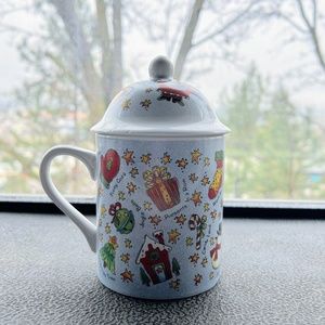 Kathryn Distefano Christmas Santa Holiday Cocoa Coffee Tea Mug w Raised Lid EUC